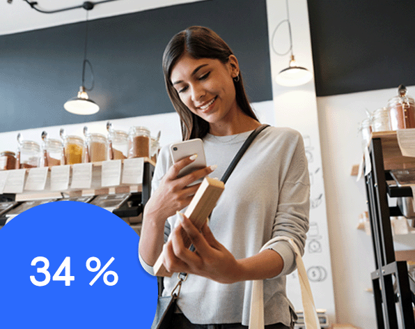 El 34 % de las personas que compran en la tienda ahora usan sus teléfonos móviles para mejorar sus experiencias de compra.